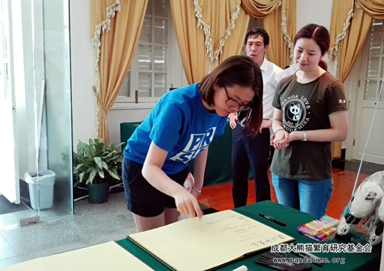 为大熊猫签名送祝福