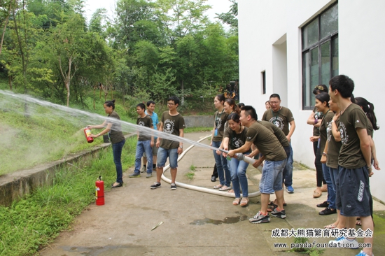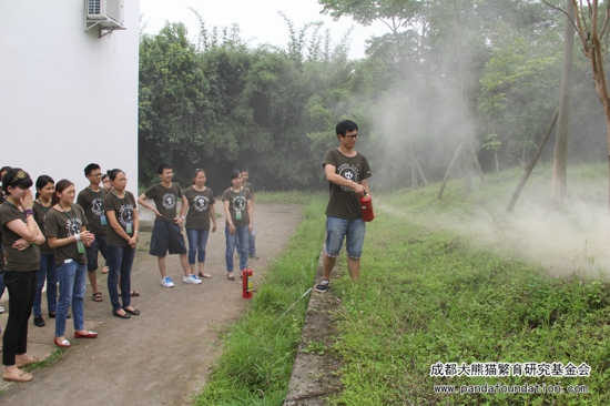 为全面贯彻落实成都大熊猫繁育研究基金会“安全第一,预防为主”的安全制度方针,有效防止各类安全事故的发生。2015年7月20日下午我会设熊猫基地公众教育项目部全体工作人员在熊猫基地安保部的指导下进行了消防学习及演练,目的是为了让项目部所有工作人员加深安全防范意识,在安全事故发生时能及时自救并科学应对险情,确保基金会人员和物资安全得到最大限度的保证。
