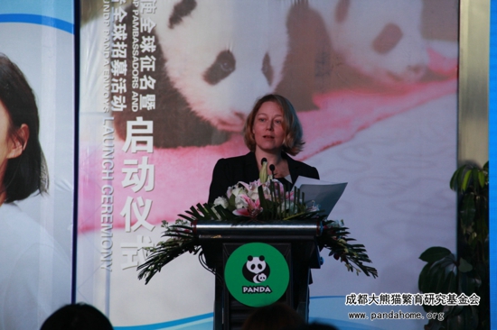 联合国开发计划署文霭洁女士在启动仪式上发表致辞,她表示大熊猫的处境反映出全世界濒危野生动物面临的困境,尤其在应对气候变化、保护陆地生态和可再生能源方面。希望通过本次活动的举办,让更多的人认识到以大熊猫为代表的世界濒危野生动物的保护现状。