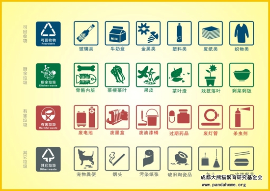 “垃圾早分类,环境分外美”,当大家参加熊猫讲堂的时候,在园区内随处可见这样的垃圾箱,可是你是否留意到上面的分类标志呢,我们又该如何正确地进行垃圾分类呢?