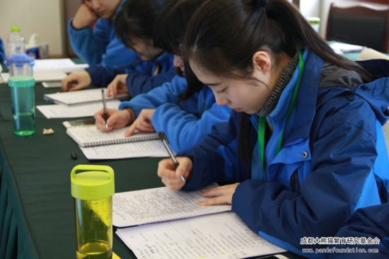 在讲解过程中,李主任一再对科普教员强调:“我们的‘熊猫讲堂’面对的不仅仅是国内游客,还有来自世界各地的外国友人。所以我们传授出去的知识一定要有科学性、趣味性,内容要丰富,这代表的不是我们个人,而是我们国家。”在这些方面,李主任起到了很好的示范带头作用,讲座中,他不是单一地针对一个问题回答是或不是,而是结合许多有趣的故事做了说明,引人入胜,在座的科普教员都被他的解释深深吸引住了,听得格外认真。