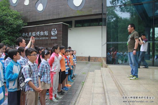 捐赠仪式后,我会科普教员带领同学们参观了幼年大熊猫别墅、成年大熊猫别墅及大熊猫太阳产房等,同学们观察到了不同年龄段的熊猫,也通过科普教员的解说了解到了大熊猫的饮食习惯和生活习性等。一路上,大家都很兴奋,各种各样的问题也随之而来:“为什么大熊猫只吃竹子呢?”,“怎么没有熊猫宝宝啊?”……面对“好奇宝宝”们的疑问,我们的科普教员都给予了耐心解答。