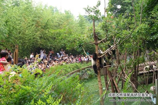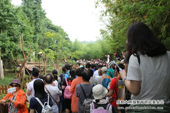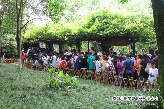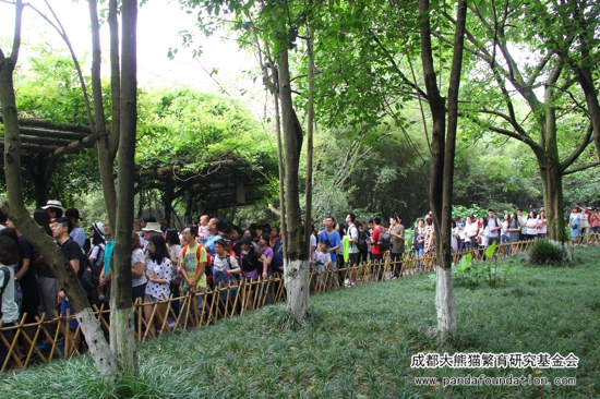今年成都端午节的第一天虽然是阴雨连绵,但从第二天起却一扫昨日的阴霾,灿烂的阳光不仅照耀着这片“天府之国”,也洒在了前来熊猫基地参观的络绎不绝的游人身上。