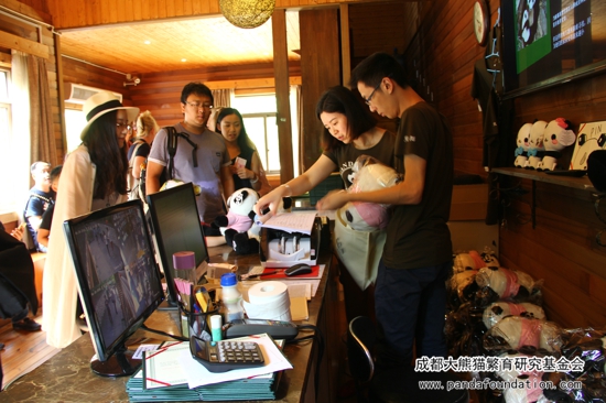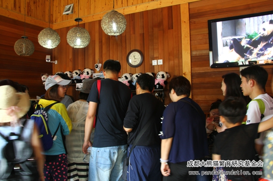 而在端午节期间,人潮汹涌的不仅是景点,我会设于熊猫基地月亮产房和太阳产房外的两个募捐工作站也迎来了大批为大熊猫捐款的爱心人士,他们将自己的爱心与祝福送给喜爱的大熊猫们。