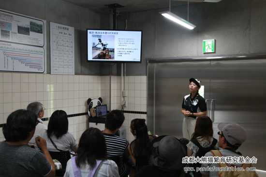 体验活动开始前,白浜野生动物园饲育课课长向我会工作人员介绍,两项活动的参与方式都是预约制,来园游客需提前至少一个月在动物园的官方网站上进行预约。活动每日限定进行一次,每次的参与人数都有固定上限,以确保活动开展的效果,“熊猫爱之旅”与“熊猫课堂”非常受游客们欢迎,每日的活动参与名额在开放后很快就会被预约满。