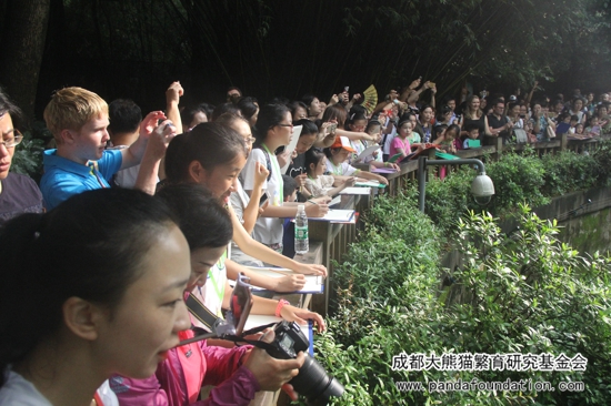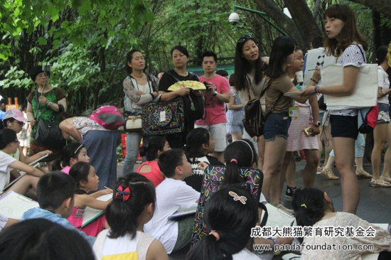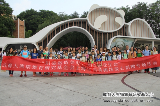 2016年7月11日,上海宝贝美树坊儿童视觉创艺中心的师生及家长一行共57人,来到成都大熊猫繁育研究基地(以下简称熊猫基地),参加了由成都大熊猫繁育研究基地、成都大熊猫公众教育研究会和成都大熊猫繁育研究基金会(以下简称基金会)联合主办的“用爱塑造美好,用心感受生命”——“熊猫讲堂”爱心捐赠专场活动。