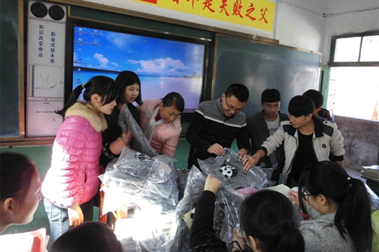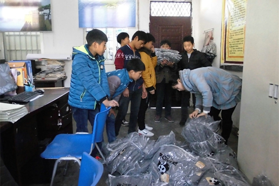 据学校留守儿童中心的张老师介绍,黑潭九义校是一所九年制义务教育学校,目前学校共有9个年级16个班,学生的身高跨度很大。因此,在这批爱心物资收到后,学校立即组织师生清点分类,并动员各个班级老师把班内同学的身高核实清楚;12月7日上午,学校根据每个班级需要的尺码把物资拿到各班,并按照同学们报的身高分发下去。截止笔者发稿,此次我会寄送的300多件卫衣已全数分发给了黑潭九义校的同学。
