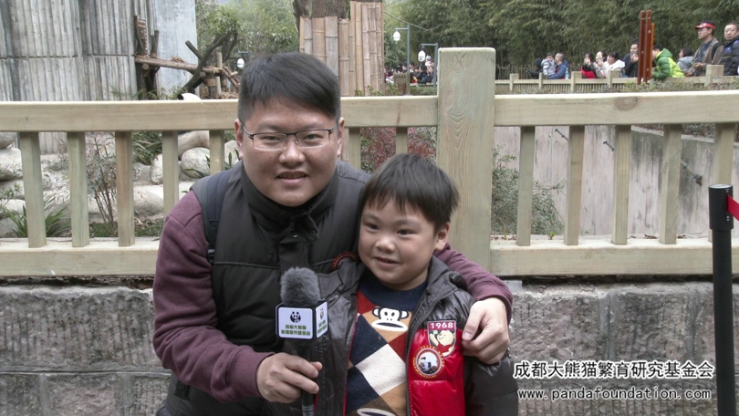 来自台北的一对父子一起为大熊猫送上了祝福:“祝这里的熊猫过得越来越好,也祝在台北的‘团团’、‘圆圆’过得好。希望更多的大熊猫能够去台湾,让大家一起来了解它们,保护它们。”