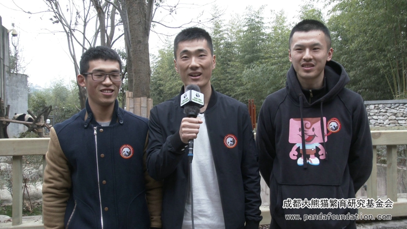 来自上海、山东、山西的小伙子们一起来看大熊猫,他们腼腆地说出了自己的祝福:“愿大熊猫新年快乐,生活越来越好,愿其它的动物也能像大熊猫这样生活。保护了它们,也就保护了我们人类自己。”