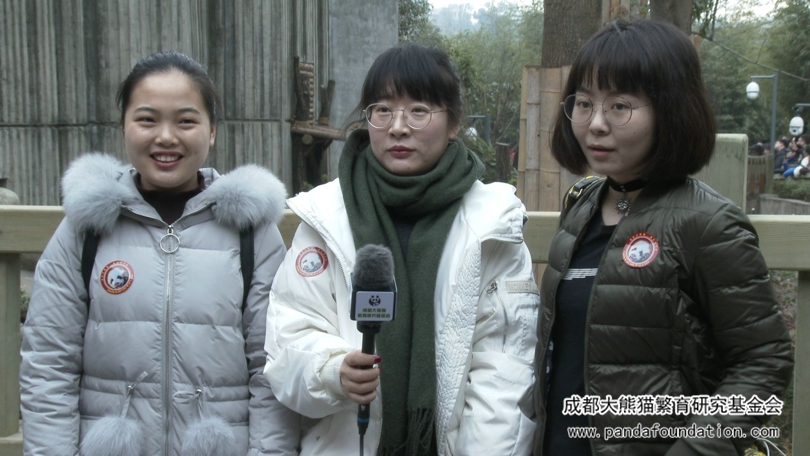 来自廊坊、大连、遂宁的三位姑娘在游玩成都大熊猫繁育研究基地的过程中相识,因喜欢大熊猫而结缘,真诚地送上祝福,希望大熊猫越来越胖,多吃点儿,并希望大熊猫的关注度在全世界越来越高,未来能够回归到野外,回归到它们真正的家乡。