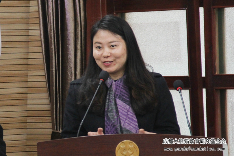 加拿大York House School学校校长Chantal Gionet女士致词,感谢我会的精心安排。Chantal Gionet女士非常热爱大熊猫,希望能为大熊猫保护做一点力所能及的事情。她认为保护野生动物是非常重要的,野生动物资源与人类、土壤、植物、水和空气等因素共同构成生态环境系统,这一系统正常协调的运转,正是人类发展的前提,在追求发展的同时我们应实现人与自然的和谐共处。