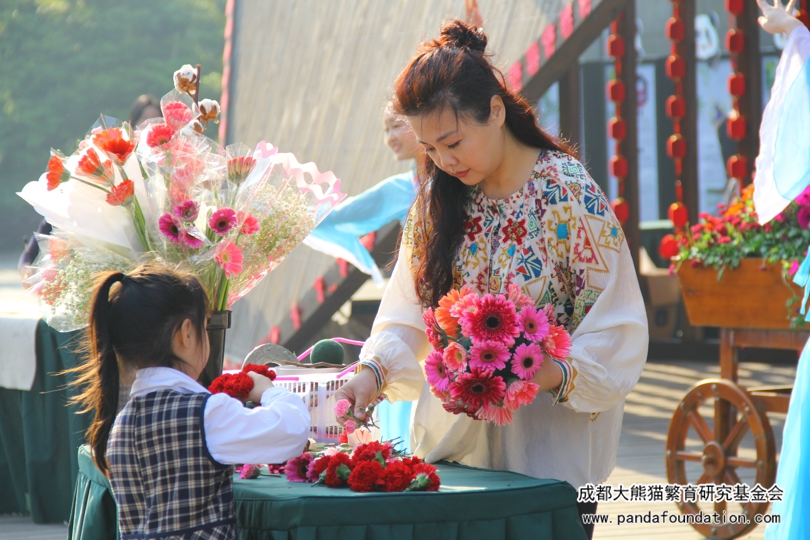 首先带来的表演是同学们的集体舞《熊猫咪咪》和《功夫熊猫》,小朋友们认真完成每一个动作,举手投足间尽显娇憨,十分可爱有趣。接着,家长们也带来了才艺展示,展示了书法、舞蹈、国画等内容。最后,同学与家长们一起亲子互动,制作了插花、熊猫体恤、熊猫模型和一幅长达近十米的熊猫画卷,将自己对大熊猫的幻想与祝福一齐融入作品中。