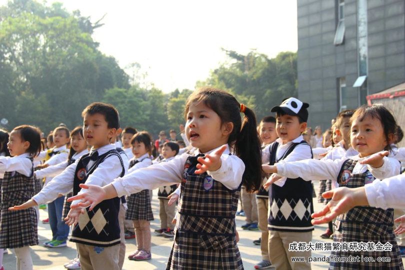 走进熊猫基地大门的那一刻起,同学们已经无法抑制自己的激动心情,主动靠近工作人员扮演的“熊猫人”求抱抱,还拉着大人们的手用童稚的语言述说着自己对大熊猫的喜爱。在“熊猫人”的带领下,同学们来到了园区内的捐款会场。然而与以往的捐款仪式不同,来自西部战区空军幼儿园的小朋友们还带来了精心准备的表演节目,为仪式增光添彩。