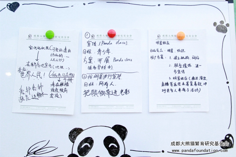 最终,在这一场“思维大作战”中,每个小组都通过共同讨论完成了各具特色的大熊猫保护宣传活动策划方案,让我们一同来看看他们的“作战”结果如何吧!