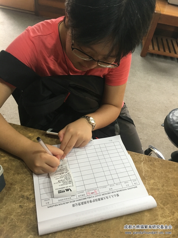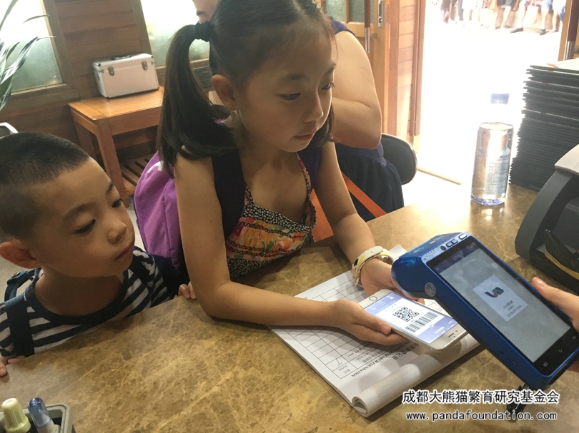 来自江苏的张云昊同学暑假专程来成都看望大熊猫,并特意来我会驻熊猫基地捐款点为大熊猫捐款。得知捐款方式已全面升级,她选择了用支付宝捐款,希望能以自己绵薄之力为保护大熊猫做一点贡献。