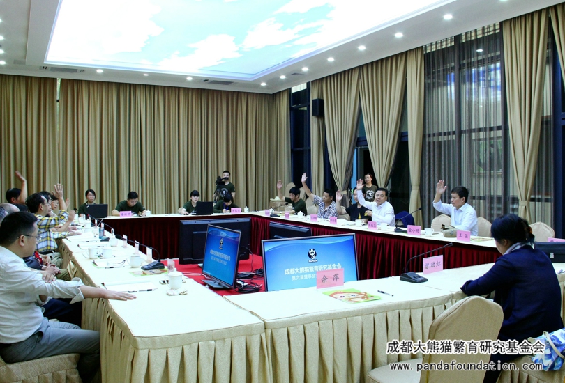 成都大熊猫繁育研究基金会第六届理事会第四次会议于2017年9月15日在我会大熊猫保护公众教育科普教室召开。我会理事参加会议,监事列席会议,老领导及上级主管单位代表受邀出席会议。