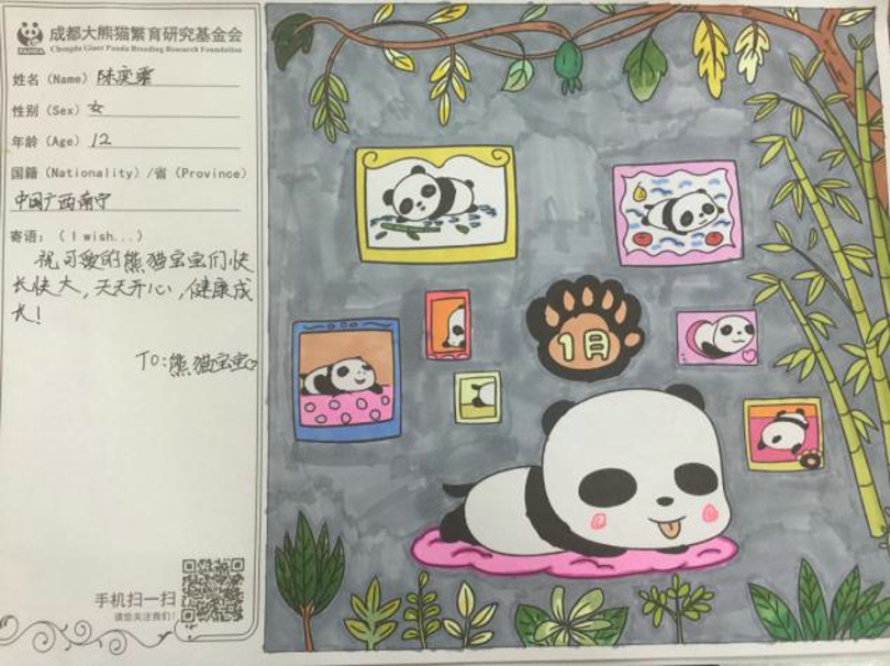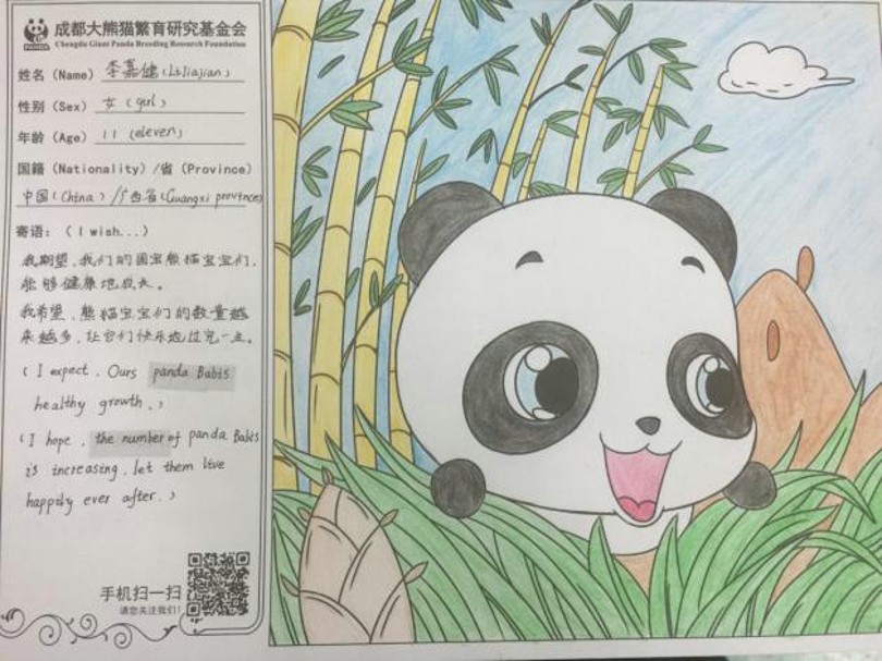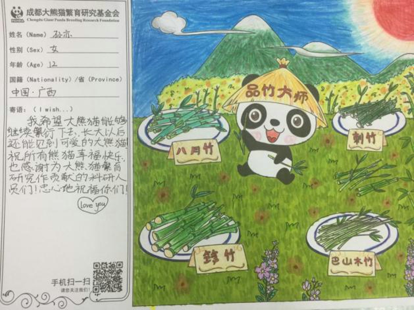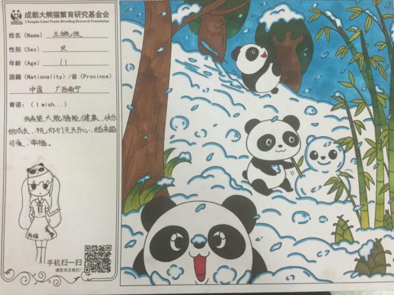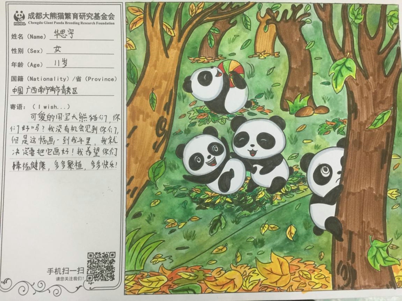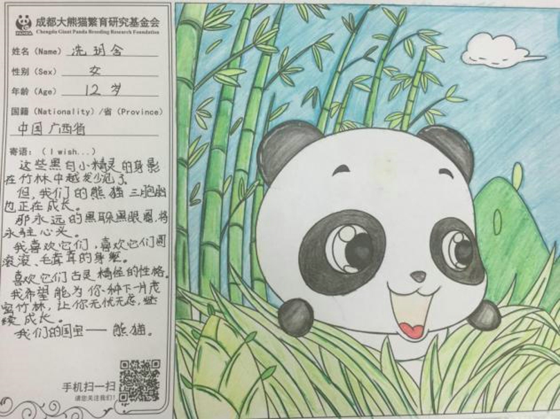 为保护大熊猫贡献自己一份力量,衷心希望大熊猫能够在大家的关爱下健康努力地成长,作为我国的国宝,继续发挥它独特的魅力。最后,让我们再次感谢广西南宁市凤翔路小学的师生们。同时,也希望你们在今后能够积极宣传大熊猫保护,持续关注国宝大熊猫!