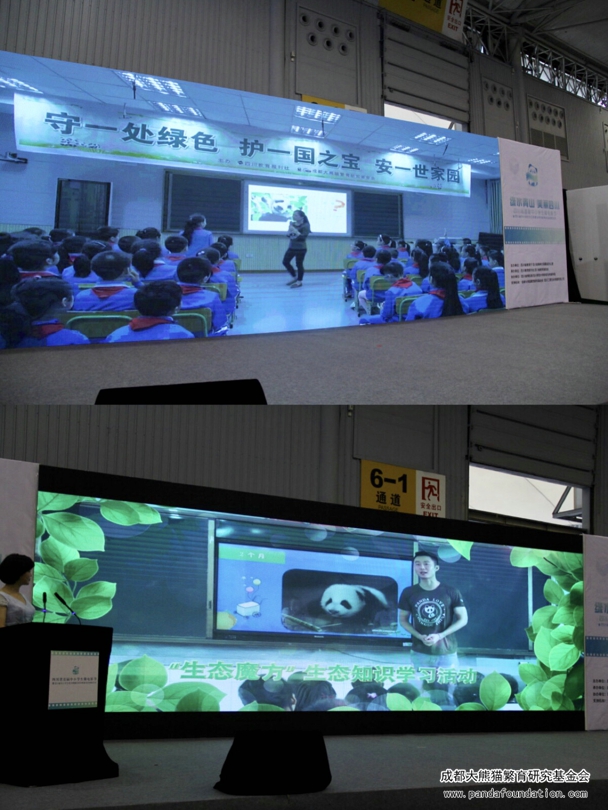 大会首先播放了《“熊猫讲堂”走基层》宣传片,展示我会携手四川教育报刊社开展的“熊猫讲堂”走基层系列活动画面,即“熊猫讲堂”走进达州市万源市太平镇中心小学和乐山市峨边彝族自治县茅坪镇中心小学。同时,会场外展览区设置了主题为“绿色连接你我”的环保植物现场义卖活动。