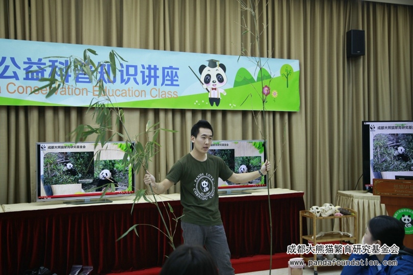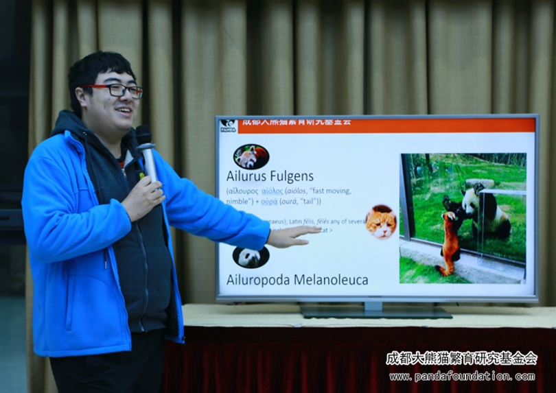科普教员刘怡希演讲采用图片、视频、游戏、绘画等方式来为大家展现了大熊猫低、中、高和极高段的“玩法”
