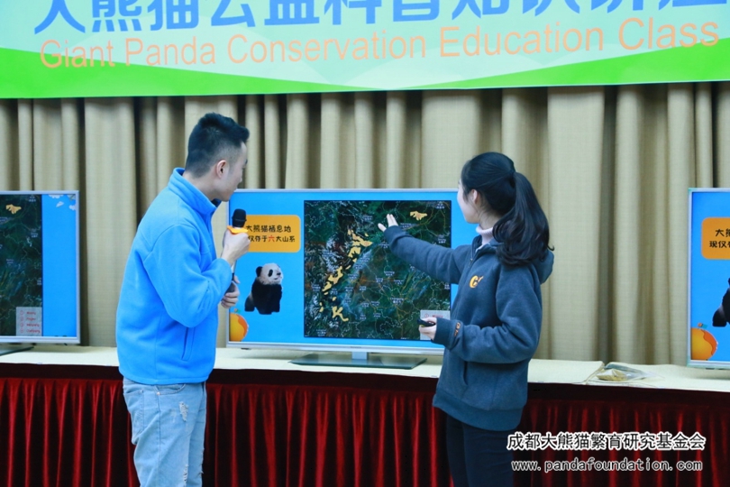 科普教员秦夕夕演讲了主题为“走进大熊猫家园”的内容,与同事深入探讨野生大熊猫分布于我国六大山系的具体位置