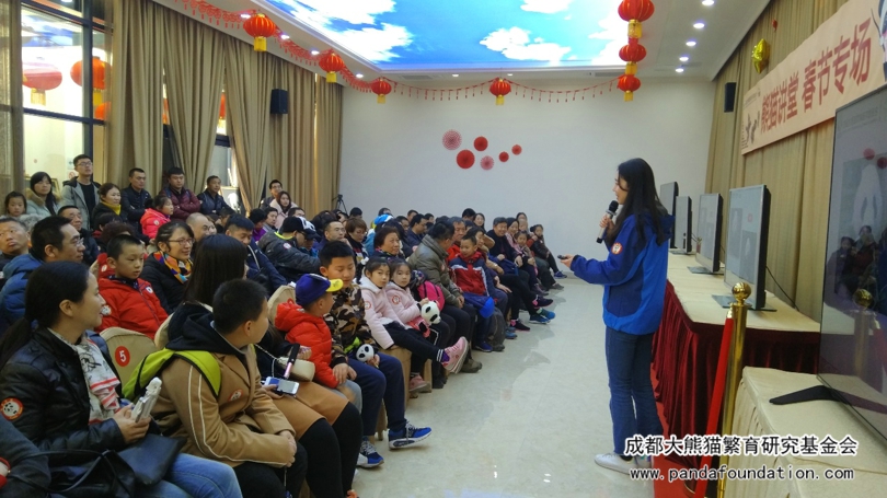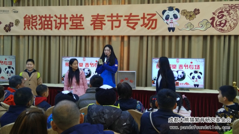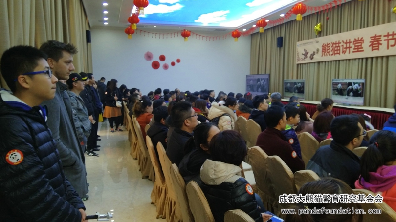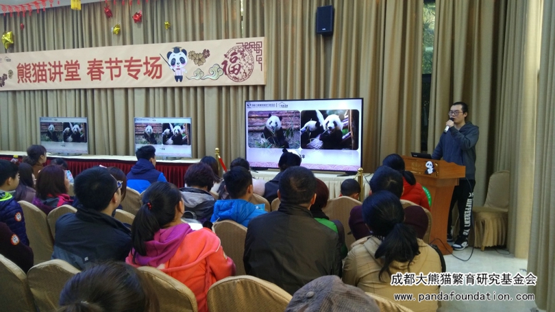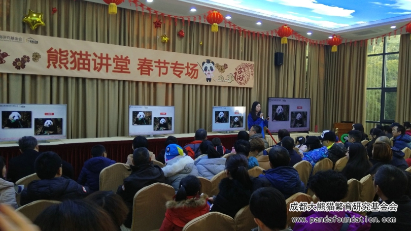 全新的主题内容、节日气息的布置,熊猫讲堂春节专场今天的第一讲便吸引了众多游客参加,一度出现早早在门前排队等待下一场的情景。