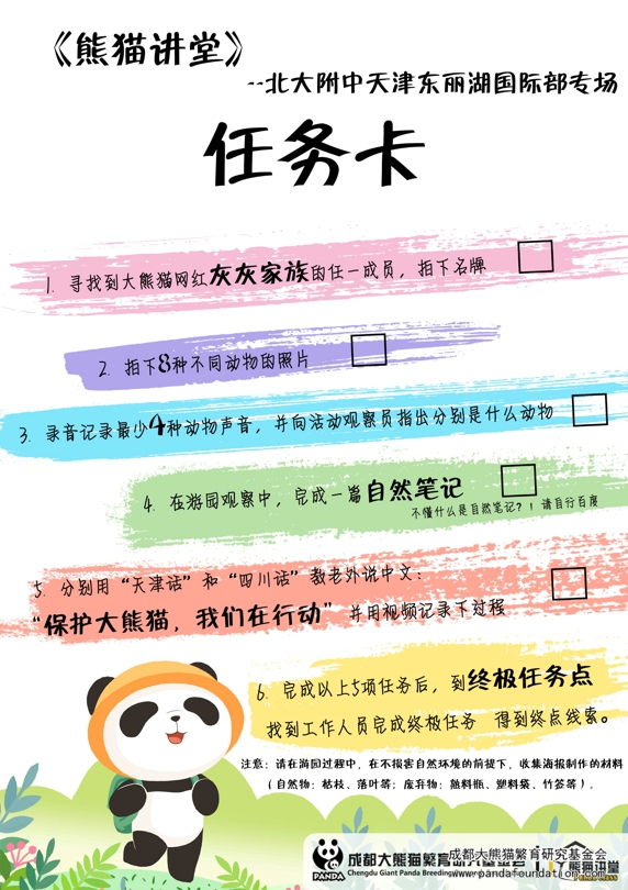 2018年4月25日,伴随着和煦的春风,来自天津北大附中东丽湖国际部的同学们来到了成都大熊猫繁育研究基地,参加了我会主办的“熊猫讲堂”之北大附中天津东丽湖国际部专场活动。