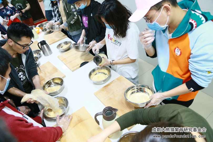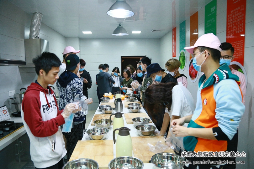上午时间很快就过去了,同学们在自然笔记实践活动与环保海报制作环节充满了热情与干劲。下午则是更加考验同学们的活动——制作熊猫窝窝头。