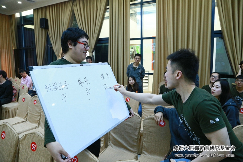 熊猫窝窝头完成之后,最为考验同学们能力的时候到啦!接下来是由同学们为观察员和游客们带来的“熊猫讲堂”公益科普知识讲座。