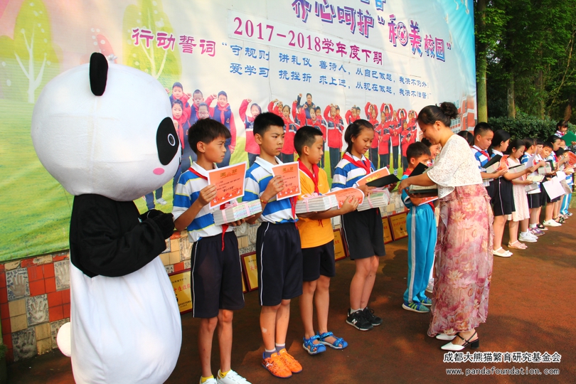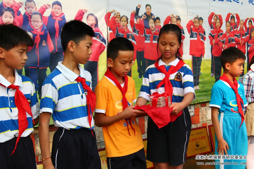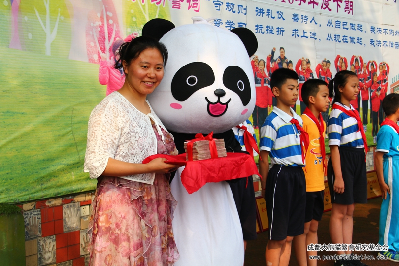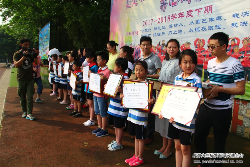 5月16日上午,在成都市三原外国语学校附属小学的操场上,经过17位“爱心小天使”的手手相传,60000元的善款被传递到了我会工作人员手中。2011年3月30日,三原附小与我会签订了认养大熊猫“源源”的捐赠协议,借由爱心认养的方式唤起同学们尊重自然、保护动物的意识,开启了师生们共同保护大熊猫的爱心历程。在过去的七年里,三原附小的师生们一直坚持为大熊猫保护事业献上爱心,今年已是第八个年头。