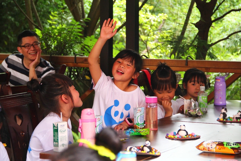 参观大熊猫的行程结束后,小朋友们在科普教员的引导下分享了自己与大熊猫的美好相会:“我看到一只大熊猫在吃竹子!”、“我看到两只大熊猫在打架!”、“我看到一只小熊猫睡在树上!”……还有不少小朋友在参观中生出好奇心,向科普教员提出疑问:“老师,为什么大熊猫刚出生是粉红色的?”、“老师,怎么判断大熊猫是男孩子还是女孩子?”••••••