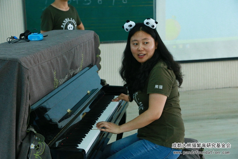 下午一点左右,我们的讲堂正式开始。本次讲堂采用轻松沙龙的形式,我会科普教员和同学们席地而坐,借助模型和PPT,为同学们绘声绘色地讲解了大熊猫的成长、习性、家园和现状等科普知识,并通过小游戏让同学们切身感受到栖息地减少和破碎化对野生大熊猫的不利影响。