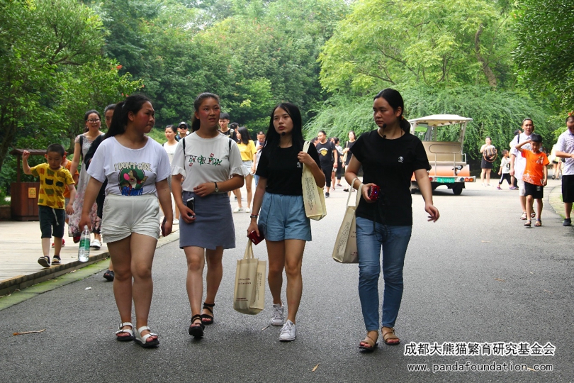 此次活动共包含两个环节,即游园参观和趣味横生的“熊猫讲堂”。当前正值夏季,天气炎热,参观熊猫最好的时间段就是清晨了。学生们在我会科普教员的带领下,一早参观了大熊猫成年别墅、月亮产房和熊猫厨房等地,看到了幼年、成年等不同年龄段的大熊猫。
