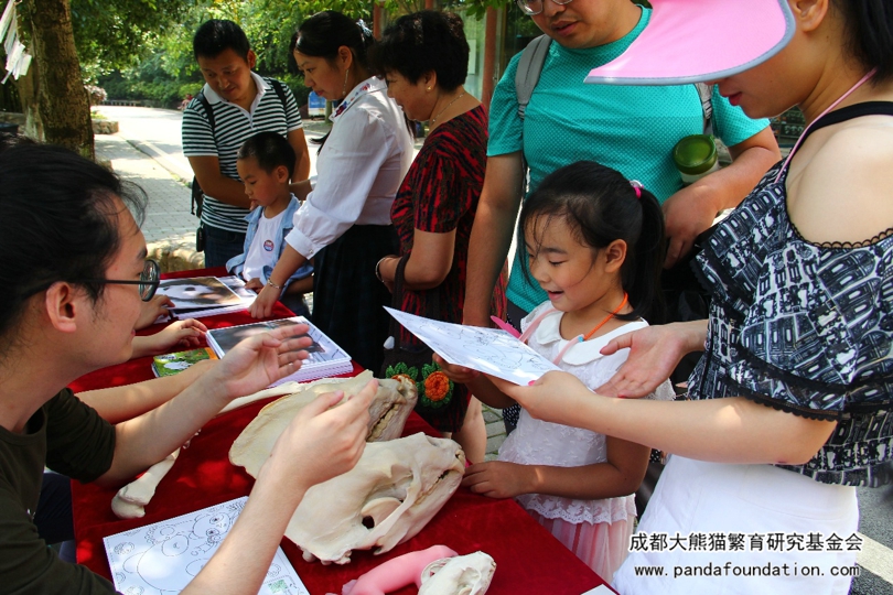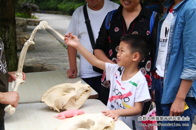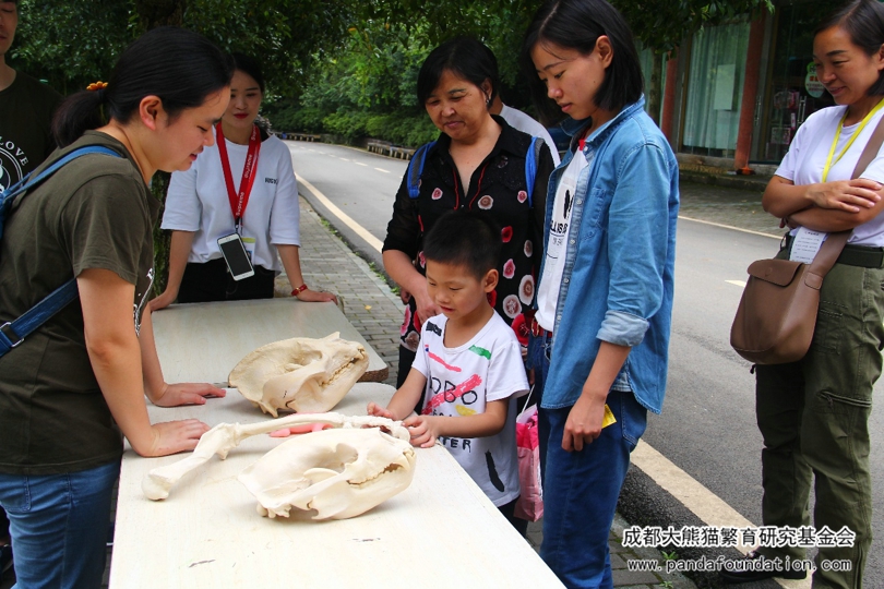 为了此次科普活动更好地开展,我会赴黔小组带来了大熊猫、亚洲黑熊及小熊猫等动物的骨骼模型及教具图片,让前来观摩的游客朋友们近距离看到动物骨骼的原貌,更加了解野生动物生态习性,加深对濒危珍稀动物保护的理解。