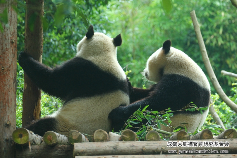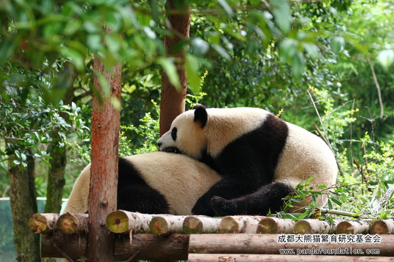 来自成都大熊猫繁育研究基地的和琪(上)和和美(下)两姐妹目前生活在贵州森林野生动物园