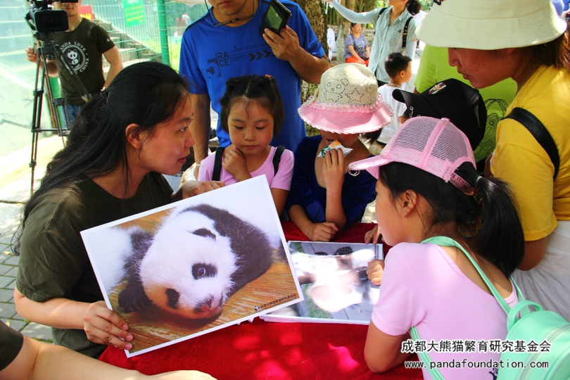 当时间来到8月12日,即“熊猫讲堂”贵州专场第三天,活动气氛达到了高潮,因为这天是和琪和美两只大熊猫双胞胎的生日。我们为此次生日小派对准备了签名墙和涂鸦活动,让参与活动的游客一起为大熊猫献上生日祝福。