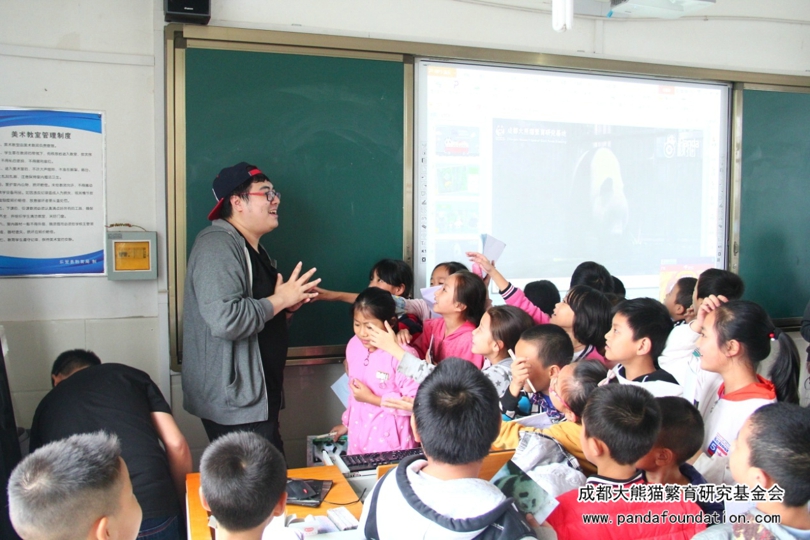 此次“熊猫讲堂”分为两场,共有该校三年级与五年级八十余名学生参与其中。同学们看到我们的到来,眼睛里充满了激动与好奇。在课堂上,同学们发挥自己的想象力,用各种形容词来描绘自己脑海中关于滚滚们的可爱形象。