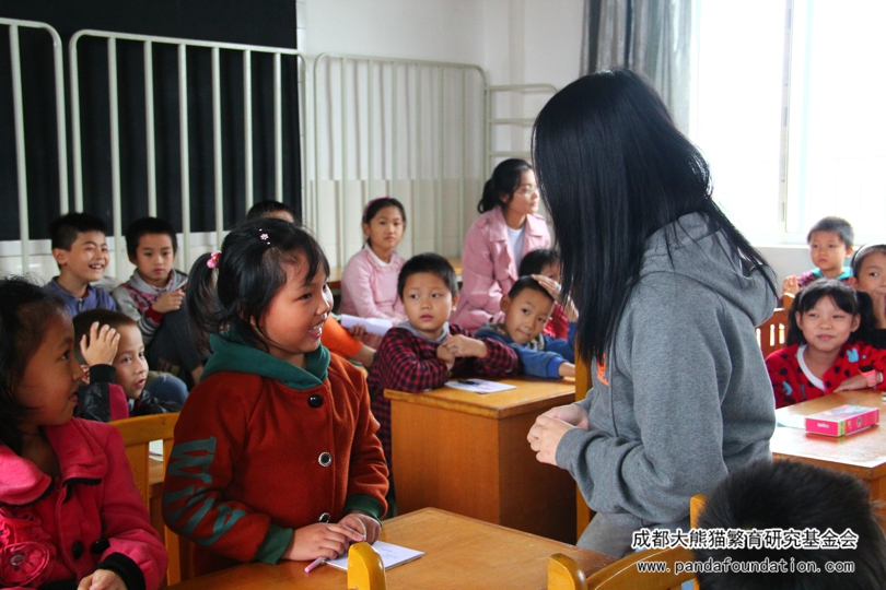 讲堂后,双河场镇中心小学彭校长向我们介绍到,该镇由于地理位置闭塞,交通不便,学生大部分为留守儿童,留守儿童对外界的认识狭窄,需要更宽阔的眼界,很难接受到基础教学之外的知识教学,因此这个活动对同学们来说是个难得的机会,也是一个接触新知识的途径。一起参加讲堂的科任老师也向我们说到,因为留守儿童们精神物资上的缺乏,更需要“熊猫讲堂”这样的“另类”课堂来丰富同学们的精神生活以及拓宽知识面,增加同学们对大熊猫及濒危动物现状的认识。今后,她也将带领同学们一起践行所学到的环保知识,从小事做起。