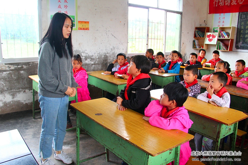 活动结束后,学校的两位教师就本次活动接受了我们的采访。已经投身乡村教育多年的胡老师说到,石庙子村小学由双河场乡中心小学管辖,目前有八名教师负责全校80名学生的各科教学。学校的大部分学生都属于留守儿童,他们的父母都在外地打工挣钱。因为学校地处比较偏僻,孩子们很少能到大城市里去。通过这次活动,能让学生们拓展视野,更多地了解我们的国宝大熊猫,进而能够关爱它们,保护我们赖以生存的环境。孩子们在课堂上的积极性也非常高,热情地举手发言,我觉得这次的活动开展非常好。