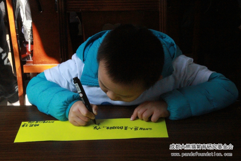 短暂的休整之后,小朋友们开始自创环保标语。