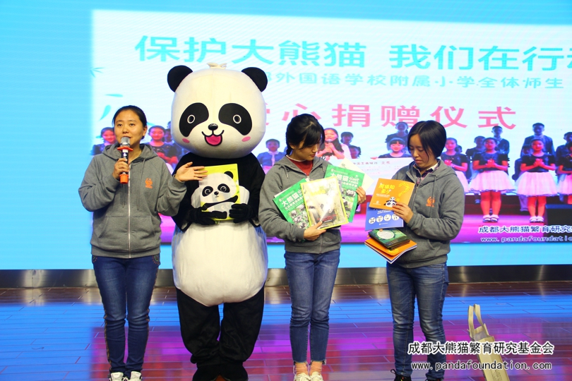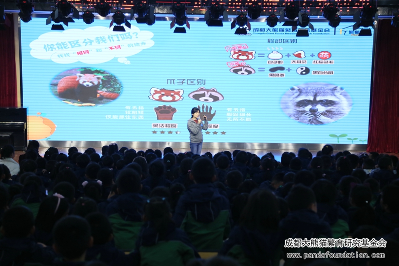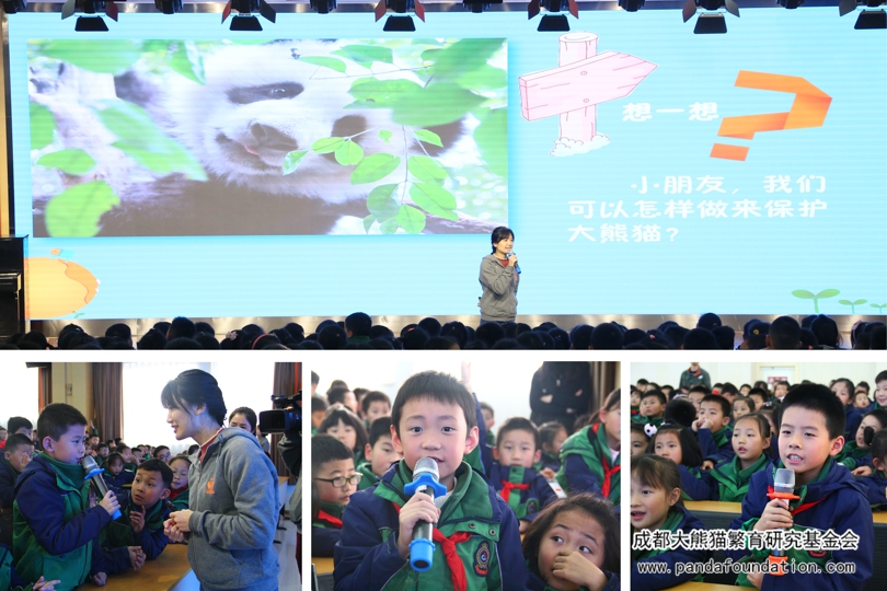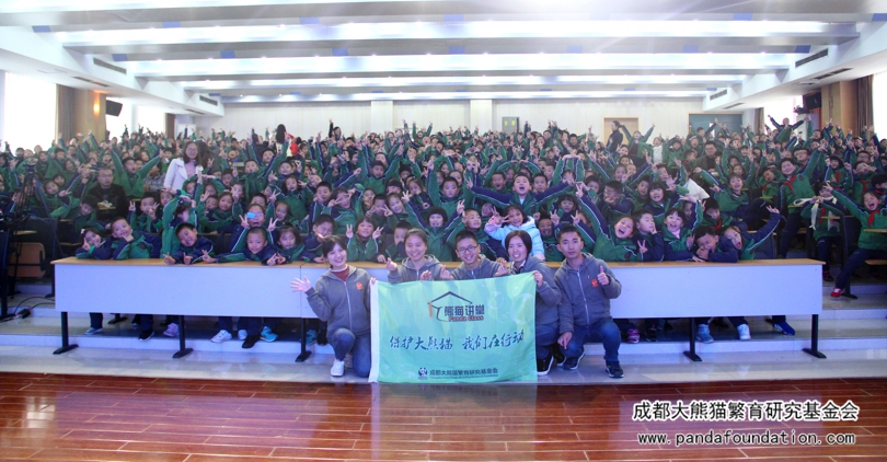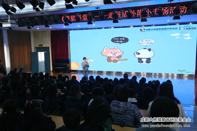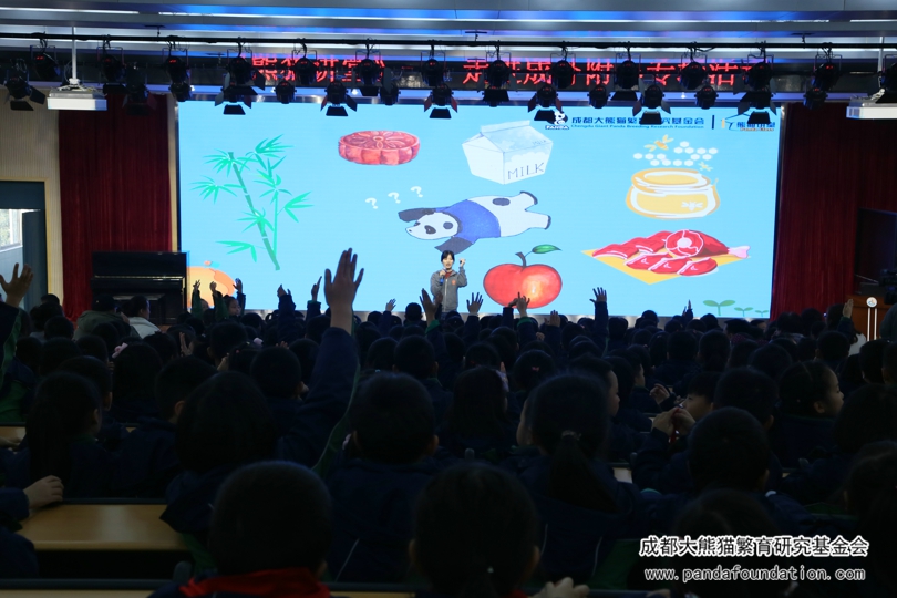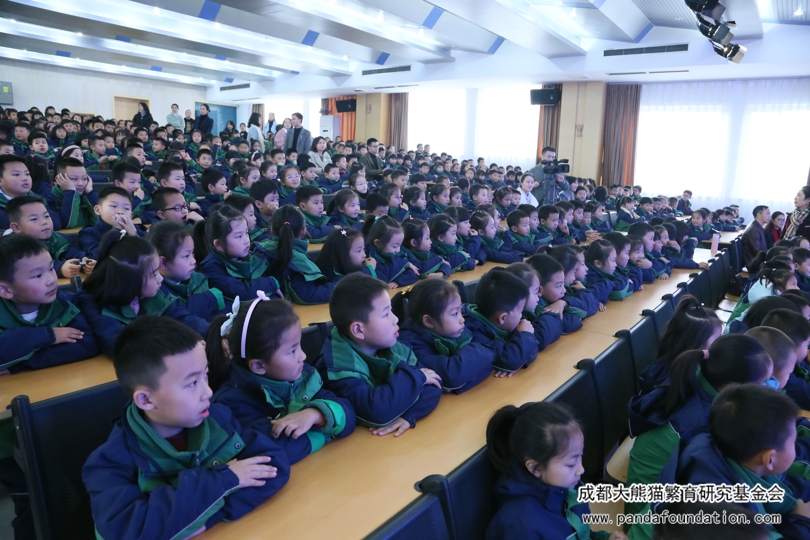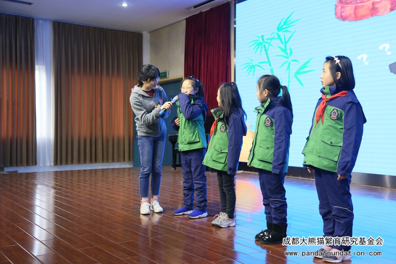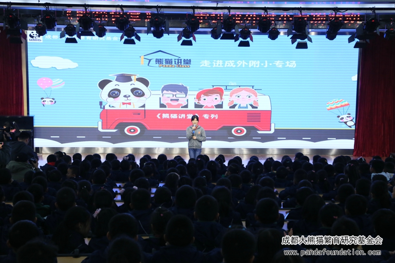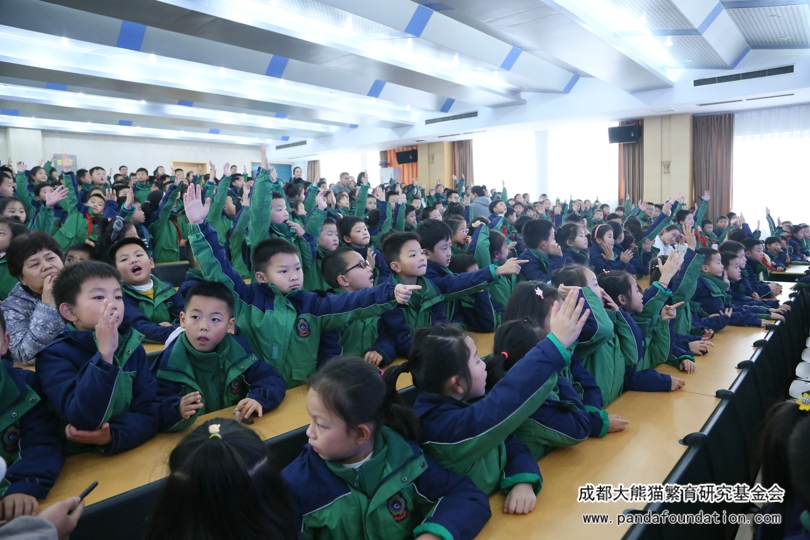 今年5月29日,在成都外国语学校附属小学举办的第十八届艺术节暨慈善晚会上,该校师生及家长将通过义卖活动筹集到的9万余元善款全部捐给我会,用于资助大熊猫等濒危珍稀野生动物的繁育研究和保护教育活动。为回馈这一义举,11月22日下午,我会工作人员一行10人专程来到了成外附小,为该校二年级约600名师生带来了一场有知识有趣味的“熊猫讲堂”专场活动。