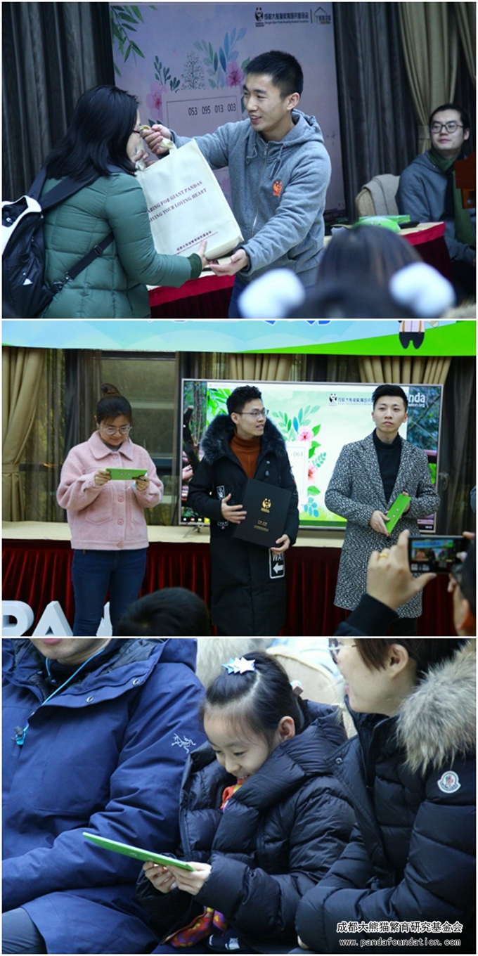 当然,除了给游客们带来新知识,我会也为专心听讲的“同学们”准备了新年礼物——“熊猫画廊”特制专属明信片等小礼品。每场讲堂结束后,科普教员会从座位编号1到100的听众中随机抽出5名幸运游客送上大礼,希望元旦的这份节日“欧气”带来一年的好运!