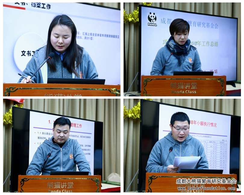 2019年1月30日下午1点30分,成都大熊猫繁育研究基金会2018年度工作总结大会在大熊猫公众教育科普教室召开。会议由办公室主持,全体工作人员参加。