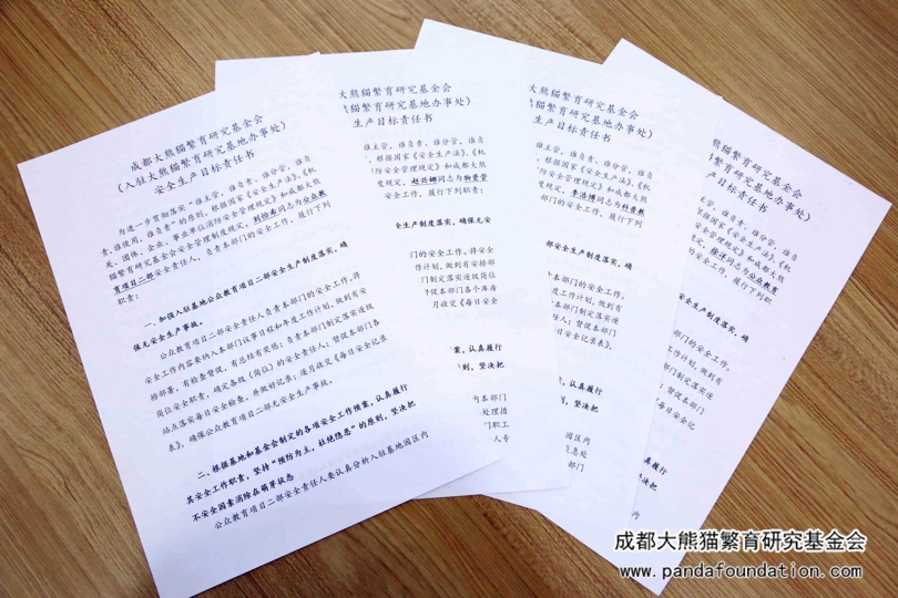 为进一步贯彻落实“谁主管,谁负责;谁分管,谁负责;谁使用,谁负责”的原则,根据《安全生产法》、《机关、团体、企业、事业单位消防安全管理规定》和《成都大熊猫繁育研究基金会安全管理制度》规定,我会安全监督小组与我会驻基地各部门安全负责人签订安全生产目标责任书,确保我会2019年度各项工作目标安全有序开展。