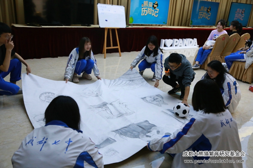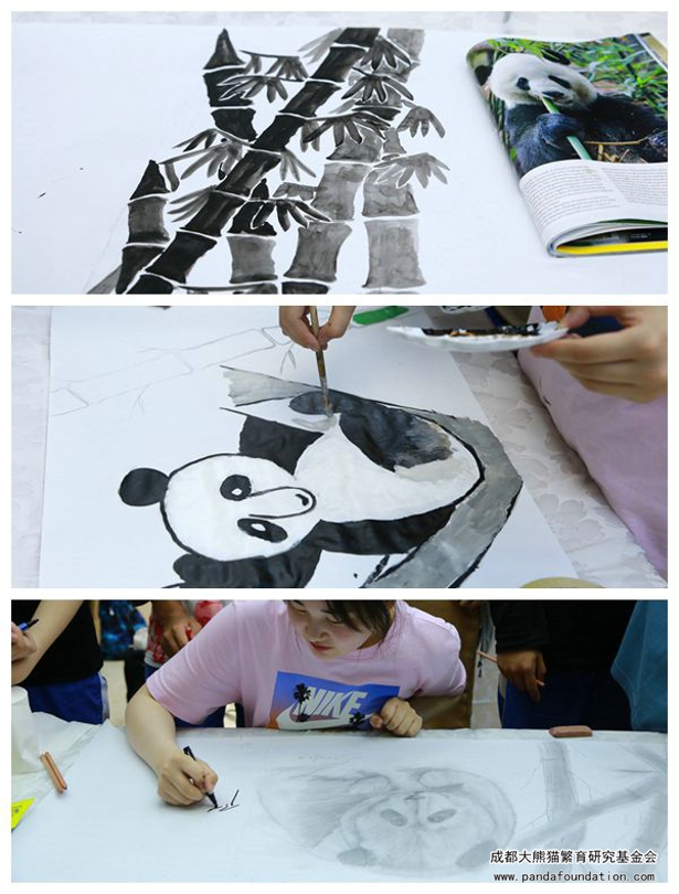 下午,我们为同学们安排了熊猫绘画和活动分享。经过一上午对大熊猫的了解,它们可爱的形象已经深深地印在了同学们的脑海里,因此绘画环节同学们以组为单位,在画卷纸上进行创作。与此同时,各组选派出两位同学负责完成制作活动分享环节的内容。