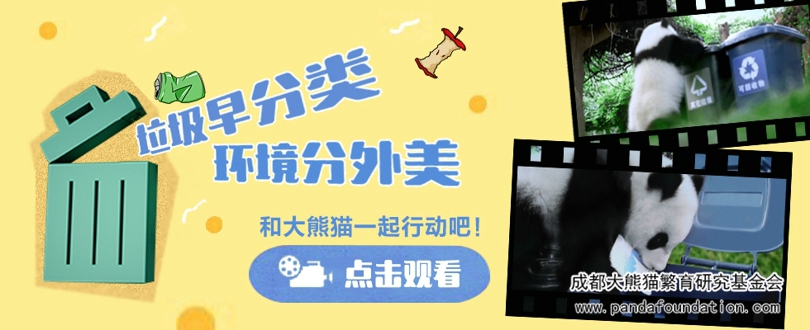 垃圾分类是处理垃圾公害的最佳解决办法。进行垃圾分类已经成为一个国家发展的必然路径。通过垃圾分类,我们能够学会节约资源,利用资源,关注环保问题,从而关注与我们人类生生相惜的广大动植物们。我会秉持促进大熊猫及珍稀濒危动物迁地与就地保护,推动野生动物保护可持续发展的宗旨,向大家发出积极实行垃圾分类的号召——垃圾早分类,环境分外美。
