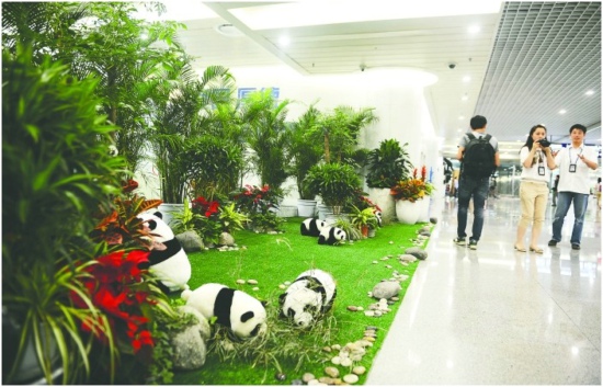 大熊猫迎客 处处体现四川特色