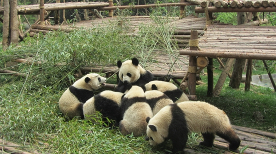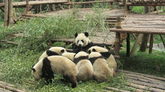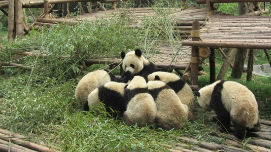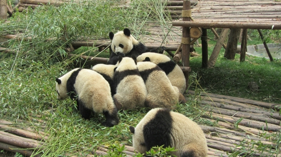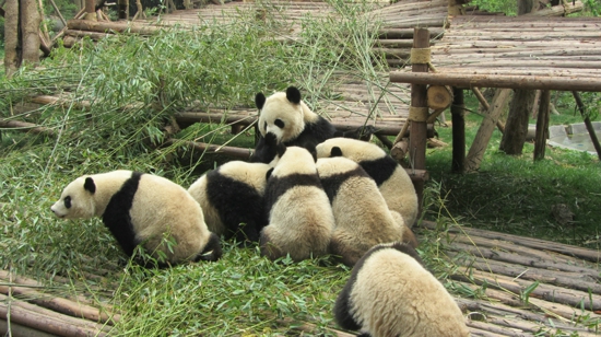 即便有着饲养员精心照顾,但熊猫宝宝依旧需要母乳的喂养才能更加强壮。这不,在成都大熊猫繁育研究基地幼体大熊猫别墅内,雌性大熊猫 “大毛”为6只去年出生的大熊猫宝宝充当“奶妈”,细心地照顾着快满一岁的熊猫宝宝们。