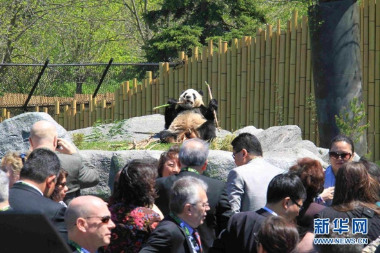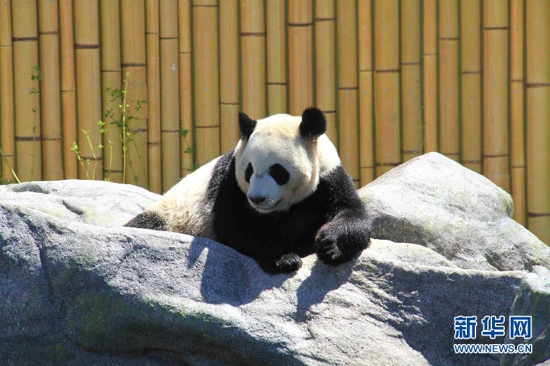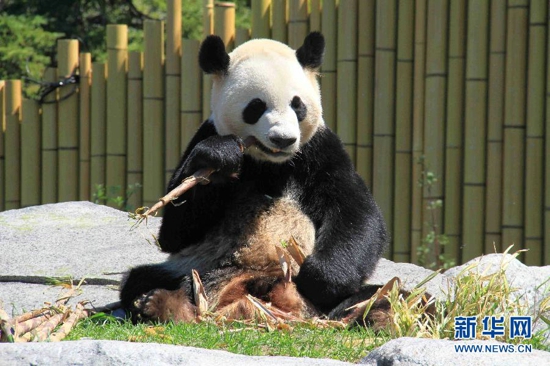 大熊猫大毛在加拿大多伦多动物园里首次公开亮相