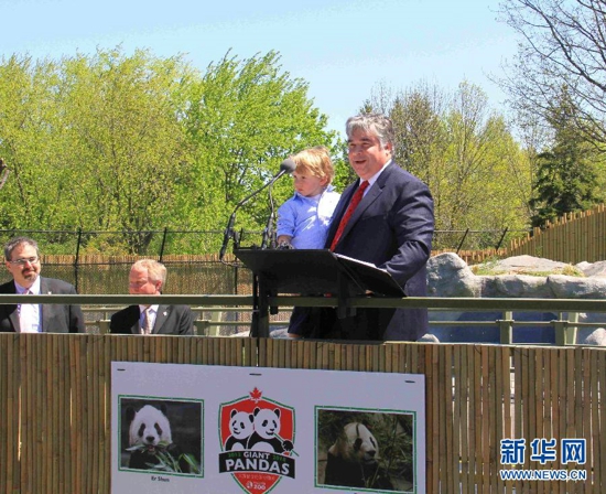 加拿大政府驻众议院领袖彼得•范洛安在多伦多动物园的大熊猫开展仪式上致辞