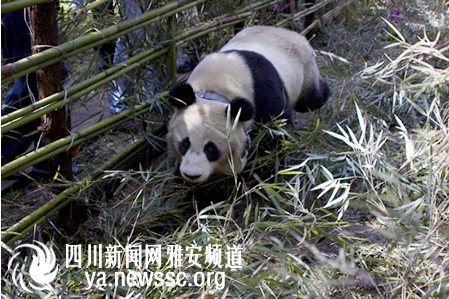 "4.20"芦山县7.0级地震,人们关注的焦点除了灾区人民的安危外,雅安大熊猫的生存状况同样引起了国内外高度关注。四川省林业厅厅长尧斯丹一行人来到雅安石棉县栗子坪自然保护区,深入了解地震后野生大熊猫放归基地的受灾情况及大熊猫生活现状,所幸的是放归大熊猫"淘淘"、"泸欣"仍在检测人员的监测范围内,状态良好。